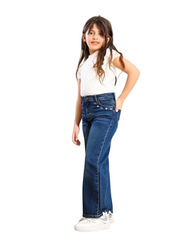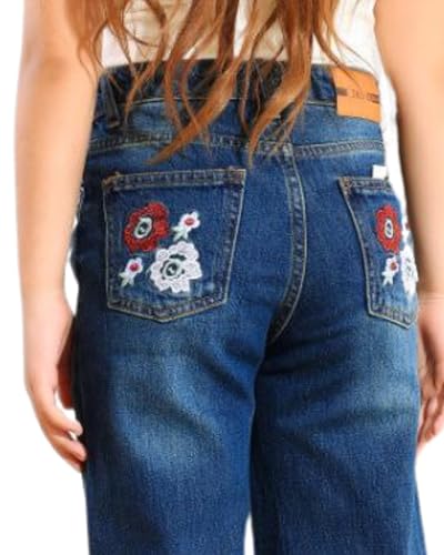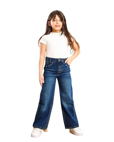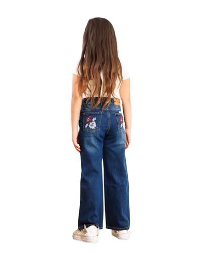 JBS Denim - بنطلون جينز وايد ليج مطرز بناتى كحلى اللون