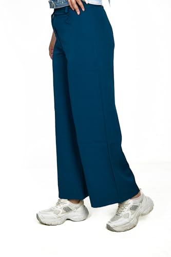Generic - بنطلون حريمى كاجوال رجل واسعه - لون بترولى