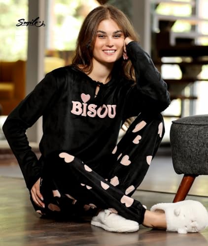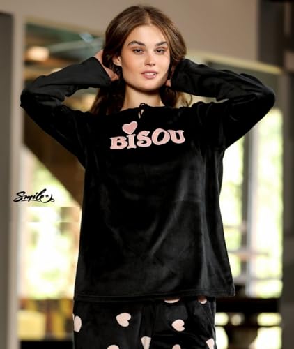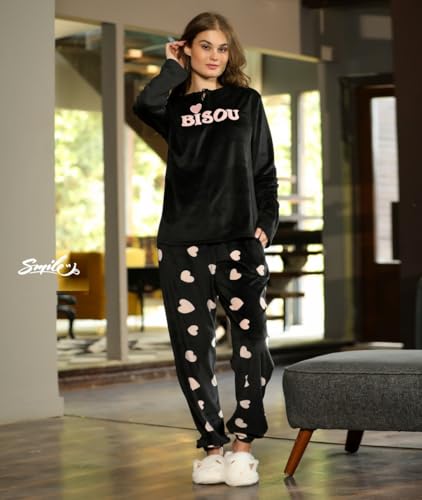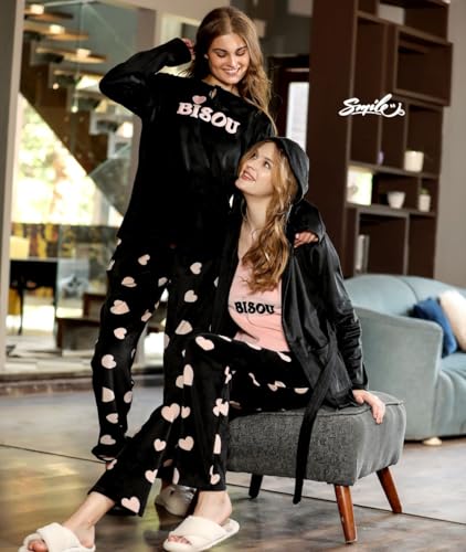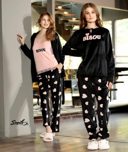 Generic - بيجاما شتوى حريمى قطيفه من قطعتين-بطباعه وتطريز