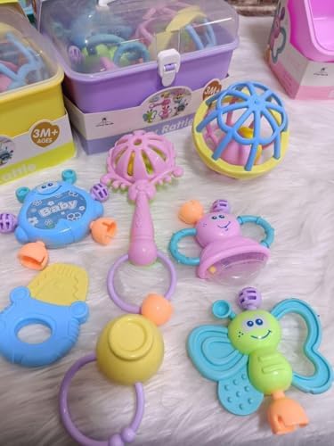 - ✅تصميم للأطفال: ألوان زاهية وأشكال مثيرة وأصوات جميلة تجذب انتباه الطفل. سهلة الإمساك وتمنح مجموعة متنوعة من اللمس. امنح طفلك المزيد من المرح والمتعة