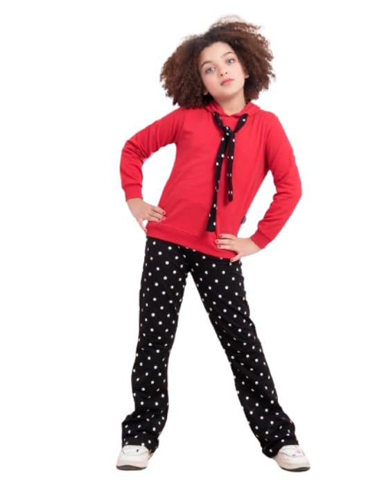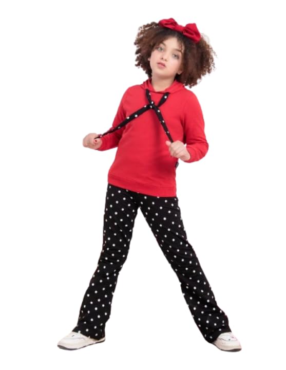 Generic - طقم بناتي تيشرت احمر وبنطلون اسود في نقط