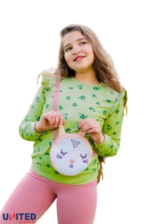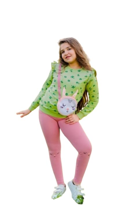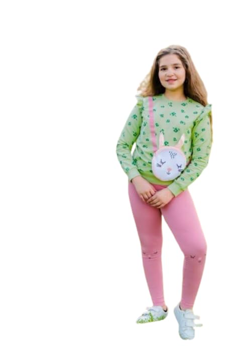 Generic - طقم بناتي تيشرت زتوني وبنطلون بينك