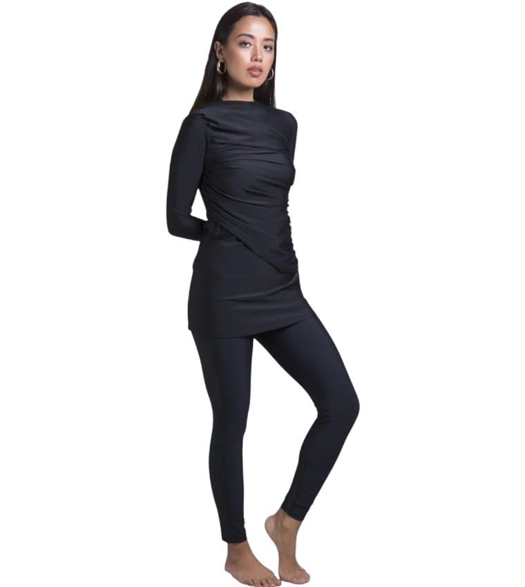 Generic - طقم ملابس سباحة (بوركيني) من فينينو مكون من قطعتين مصنوع من الليكراه - قصقه مختلفه و شكل مميز و مريح متوفر مقاسات مختلفه لون اسود