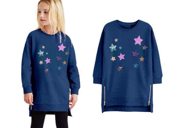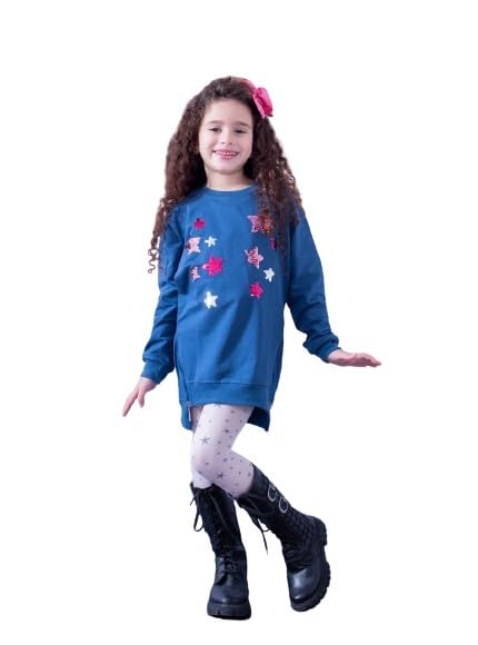 Generic - فستان بناتي ازرق به رسمه خامه ديجونيل ( قطن ) ، للفتيات