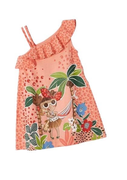 Generic - فستان بناتي سيموني كتف حماله وكتف كرانيش ويوجد به رسمه