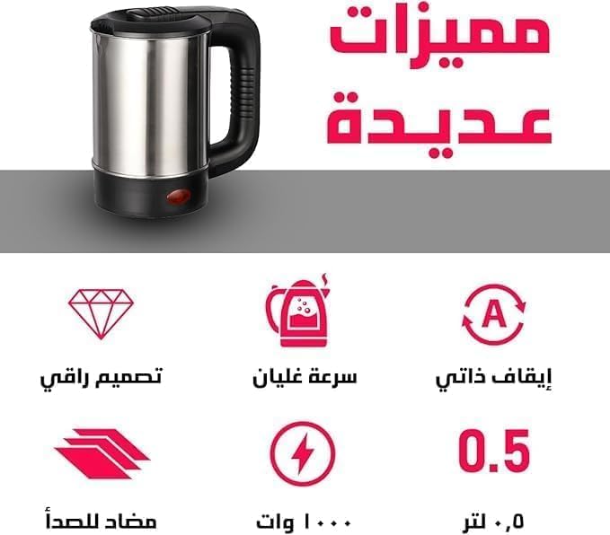 • تصميم متكامل ومحمول: شكلها مدمج وخفيف الوزن، وتستخدم لغلي الماء وتحضير المشروبات الساخنة بسهولة.