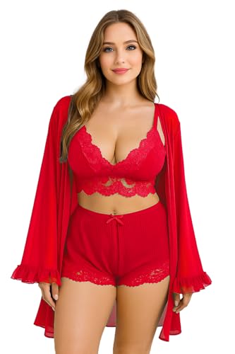GAMAL SONS FOR ABAYA - لانجيري مكون من 3 قطع موديل 00590 (احمر)