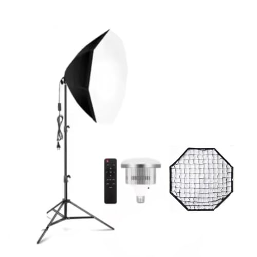 Generic - مجموعه اضاءة 1 سوفت بوكس سداسى, مقاس 65 سم , يتضمن 1 لمبه 150 واط ذات اضاءة قوية, 1 ستاند 2 م ,1 ريموت تحكم عن بعد و جريد للتحكم فى تسليط الضوء, مع ثلاثه الوان للاضاءة (ابيض-اصفر-دافئ).