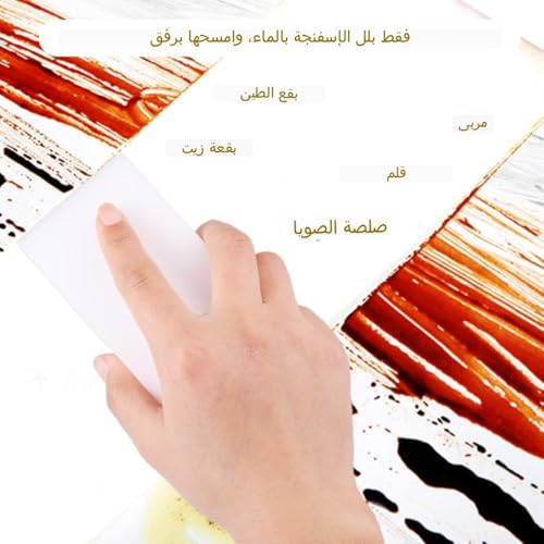 • ٢) سهولة الاستخدام: فقط بلل الإسفنجة بالماء وامسح برفق لإزالة البقع العنيدة بكفاءة عالية