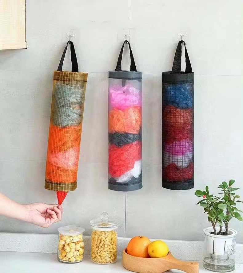 Generic - منظم أكياس بلاستيك شبكي معلق لتنظيم وحمل الأكياس البلاستيك الشفافة وأكياس إعادة التدوير والبقالة - اللون عشوائي -1 قطعة