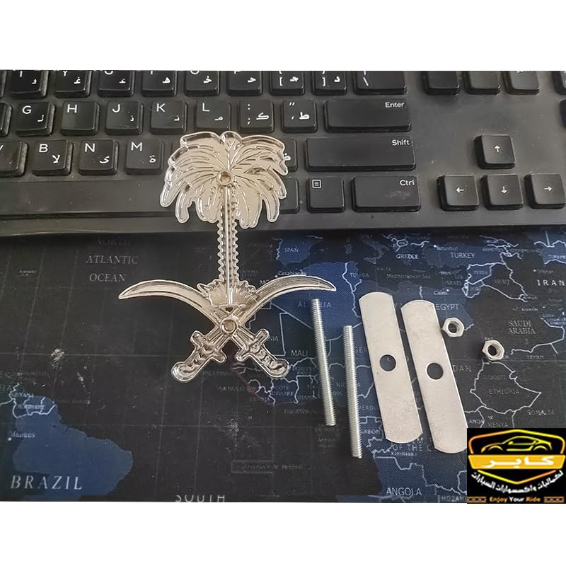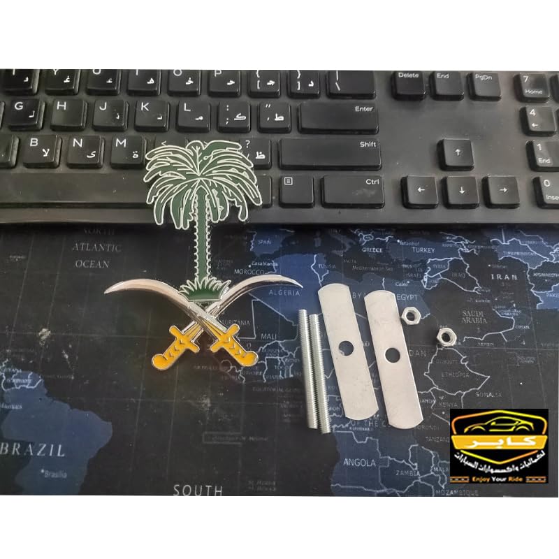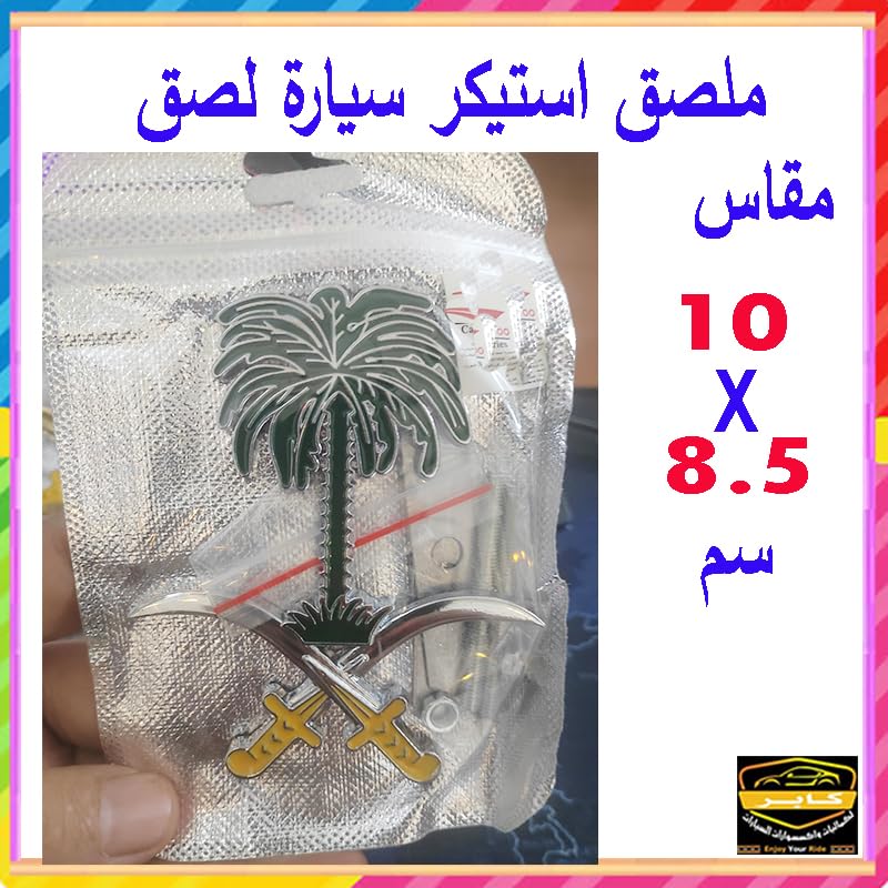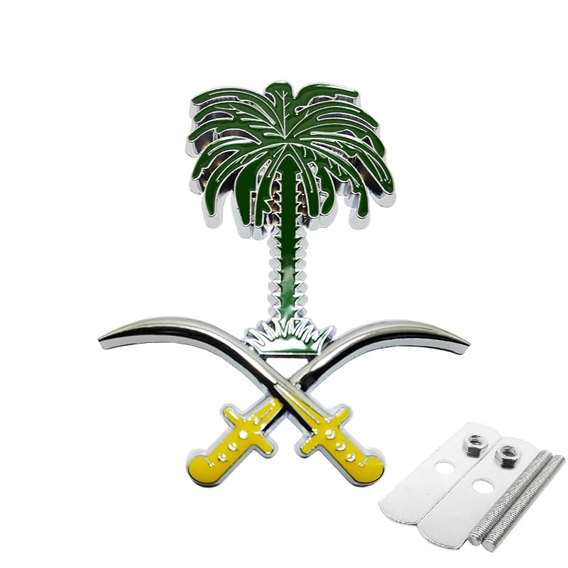 Generic - ملصق سيارة، شارة بديل العلامة القديمة والتالفة او المفقودة (سيفين ونخلة فضى فى اخضر بالمسامير، قطعة واحدة، مقاس 10 * 8.5 سم، كود: 9633)