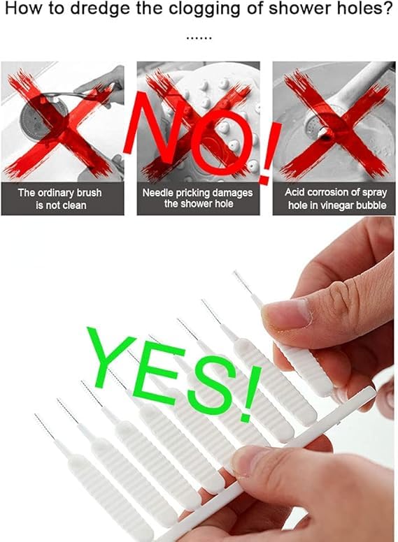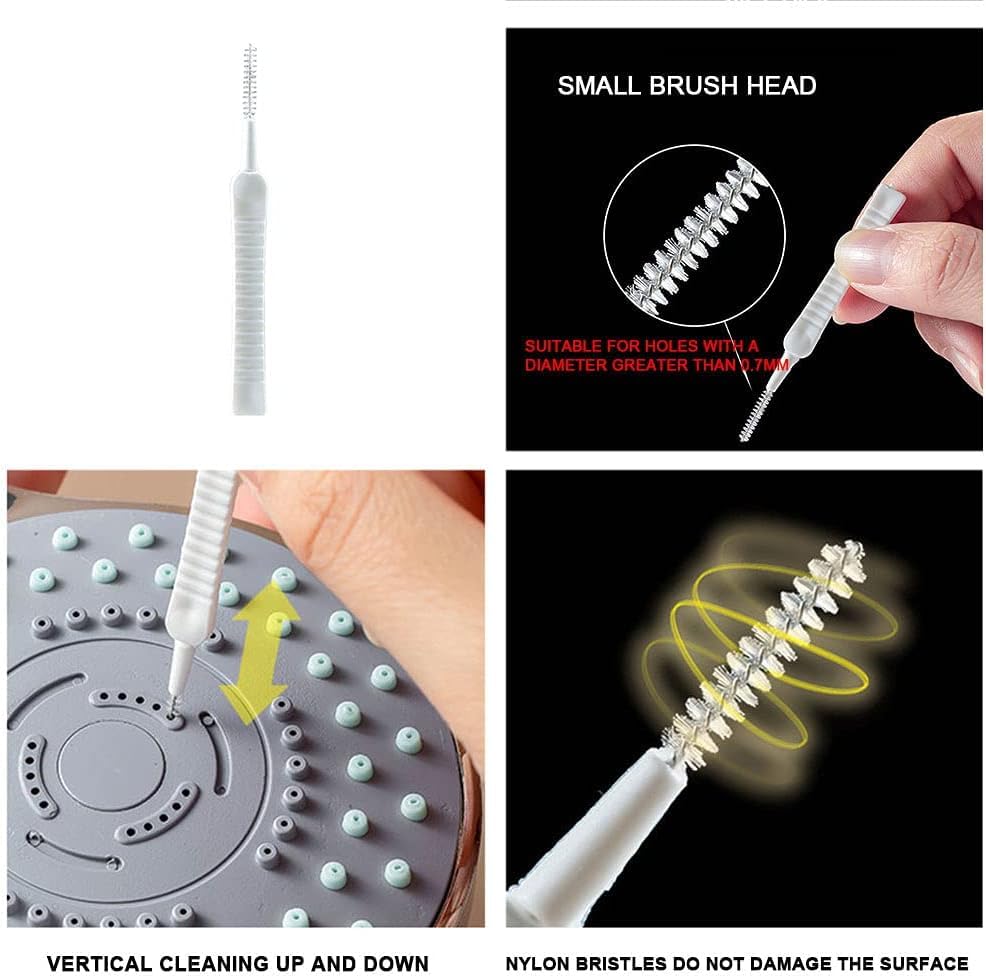 - شعيرات النايلون مرنة ومقاومة للتآكل والتشوه الحراري، مما يجعلها سهلة الاستخدام وتساعد على إزالة البقايا لحماية رأس الدش من الانسداد.