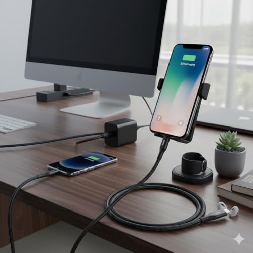 • كيبل بقدرة شحن فائقة 100 واط لتوفير أداء سريع وقوي يناسب أجهزة اللابتوب والهواتف الحديثة.
