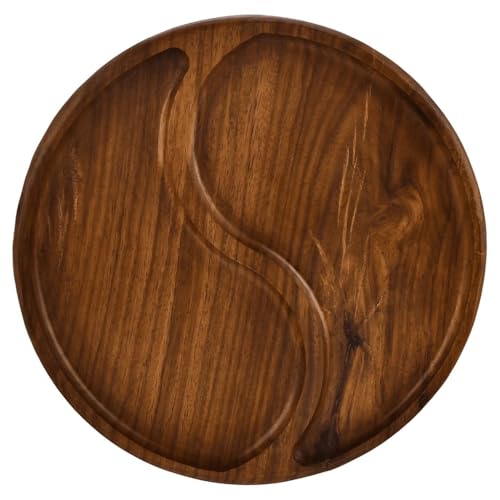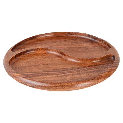 Generic - طبق تسالي خشب سرسوع طبيعي 100٪ بدون ألوان صناعية أو مواد كيميائية معالج بزيت الزيتون الغذائي آمن وصحي لتقديم الطعام تصميم فاخر يضيف لمسة طبيعية راقية للمطبخ,دائري 2عين 30سم