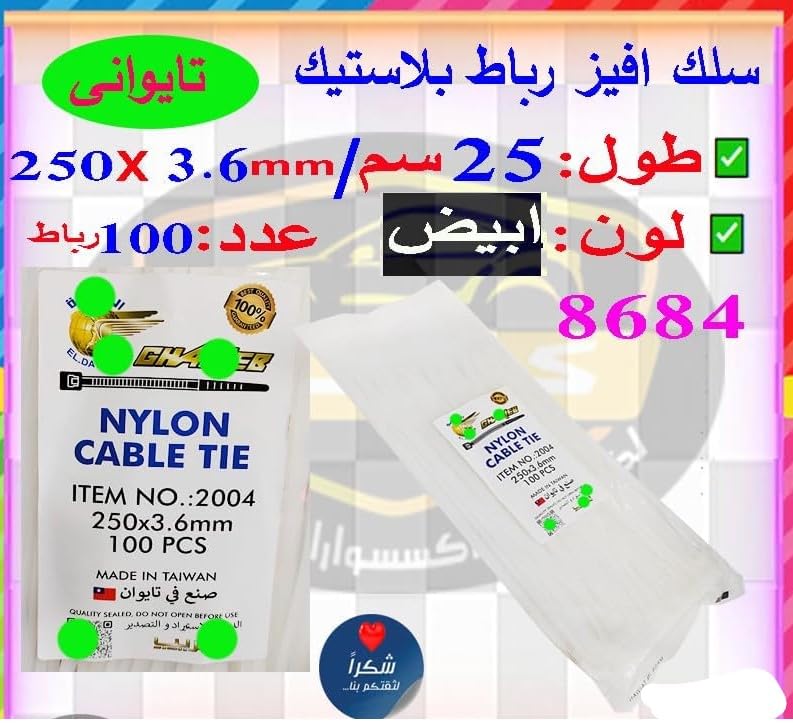 Generic - رباط حزام كابلات ، افيز بلاستيك حزام ربط ذات مقاومة عاليه للاستعمال في الاماكن المغلقه و المفتوحة( (100 قطعة ، ابيض ، 25 سم ، 3.6 مم ، كود1035: 8684 )--من نسمه ستور
