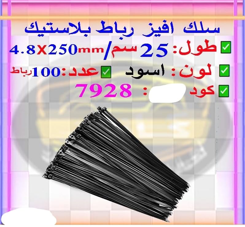 Generic - حزام رباط بلاستيك ذات مقاومة عاليه للاستعمال في الاماكن المغلقه و المفتوحة ( 100 رباط ، اسود ، 25 سم ، 4.8 مم ) - من نسمه ستور