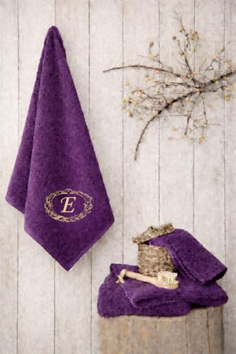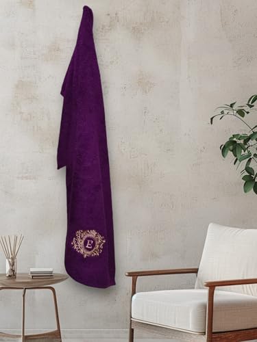 Generic - فوطة حمام مطرزة مصنوعة من القطن 100% عالية الامتصاص وسريعة الجفاف بتصميم كلاسيكي للفنادق وحمامات السبا (تطريز حرف E) (أرجواني، 1.1 متر × 55 سم)