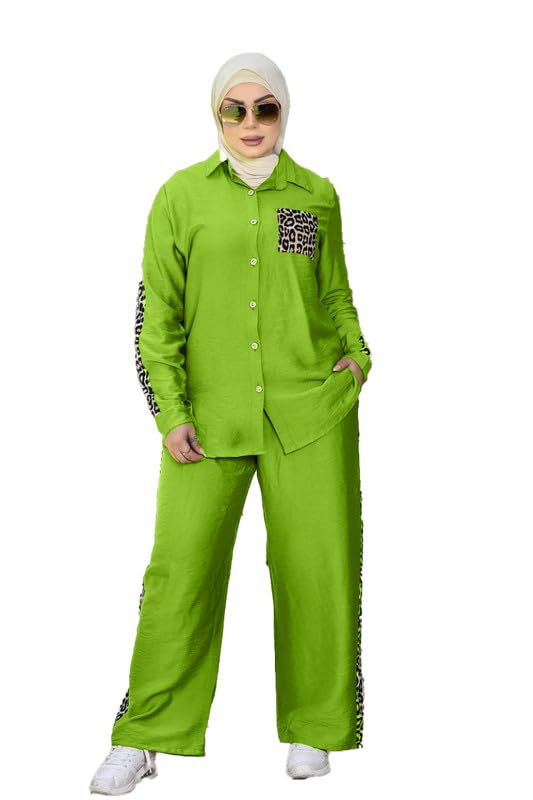 GAMAL SONS FOR ABAYA - طقم رياضي نسائي قطعتين – قميص بأزرار مع بنطلون وان سايز يلبس لغايه 100 الخامه كريشه GAMAL SONS FOR ABAYA GS-254-42496-Parent