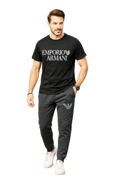 Generic - بيجامه رجالى صيفي - تيشرت قطن سينجل ليكرا و بنطالون قطن 100% سمر ميلتون - لون أسود - مقاس 3XL - موديل رقم #: 459-0907