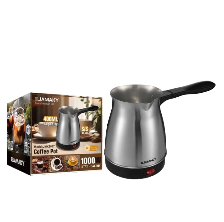 Generic - ماكينة كهربائية لتحضير القهوة التركي واليوناني من الفولاذ المقاوم للصدأ من جاماكي بتصميم محمول ومقاوم للماء، كنكة لتسخين الماء في المنزل، 1000 واط، موديل JMK9017 من الفولاذ المقاوم للصدأ (ايطالي)