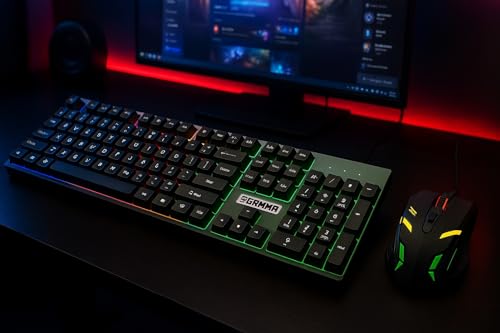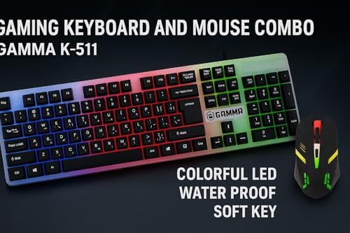 Generic - كيبورد وماوس جيمنج بإضاءة ليد وتصميم متين ومقاوم للماء بـ104 زر ناعم سريع الاستجابة متوافق مع مختلف الأنظمة من كومبو جاما K-511