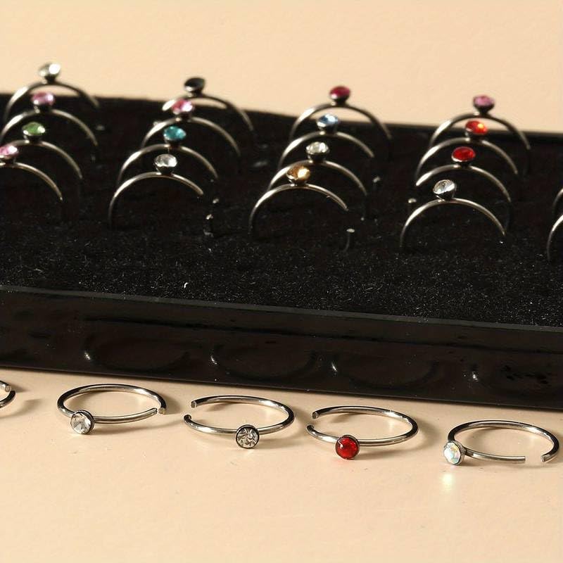 Generic - مجموعة من 10 قطع من أقراط الأنف الحلقية الملونة بتصميم بسيط صغير ورفيع للانف والأذن، مجوهرات للنساء والفتيات