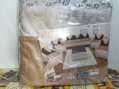 Generic - طقم بياضات صالون 11 قطع 1 كنبه و 4 كراسى 6 مناديل متعددة الألوان اللون حسب المتاح بالمخزن
