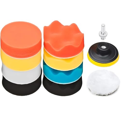 Generic - طقم تلميع السيارات 11 قطعة من وسادات الفوم والصوف مقاس 3 انش مع محول مثقاب – مجموعة احترافية لتلميع وتشميع وصقل الطلاء وإزالة الخدوش واستعادة لمعان السيارة وحمايتها بطبقة لامعة متينة