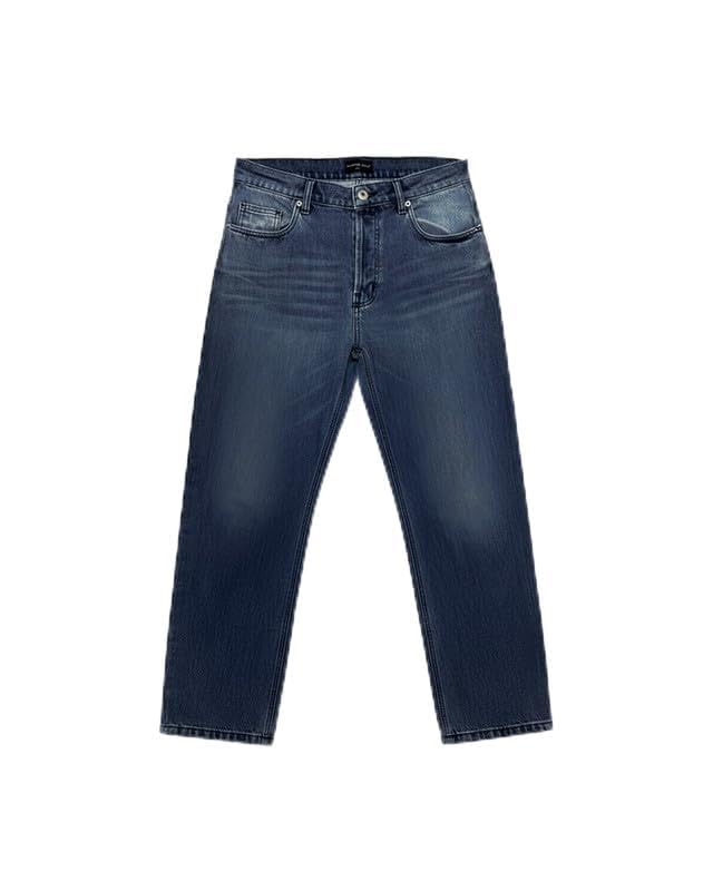 CHERTEX - بنطلون جينز بقصة عادية مغسول، كحلي 1162