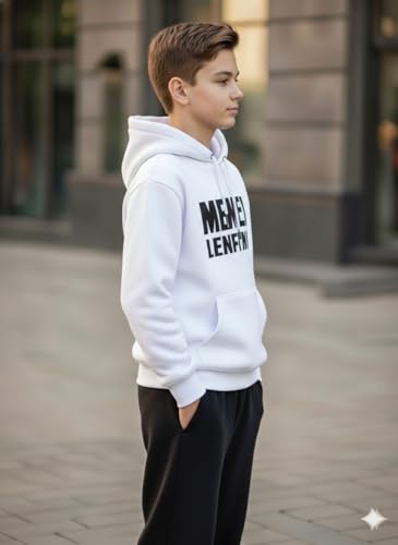 Generic - سويت شيرت 4031 للأولاد بتصميم عصري وجذاب، مزين بطبعات أمامية أنيقة، مصنوع من قماش ميلتون مع بطانة داخلية لتوفير دفء ممتاز، مزود بجيوب أمامية واسعة وكابيشو مريح من فور اتش، مقاس 14 إلى 16 سنة