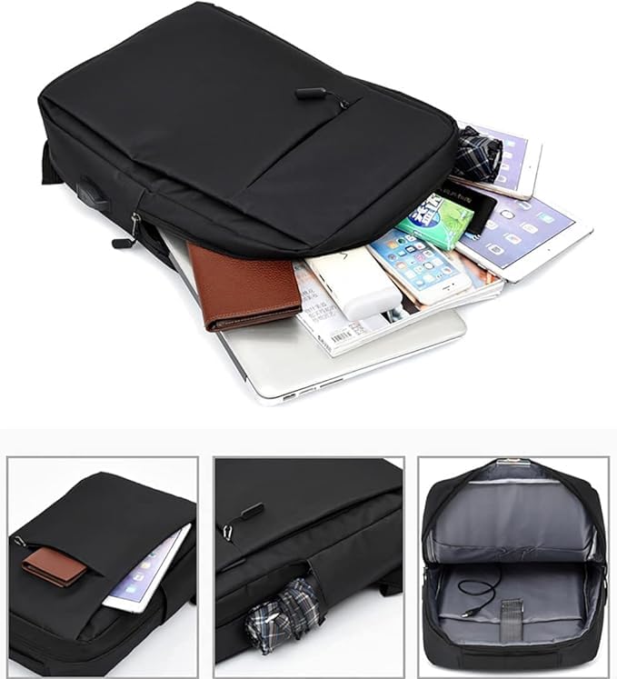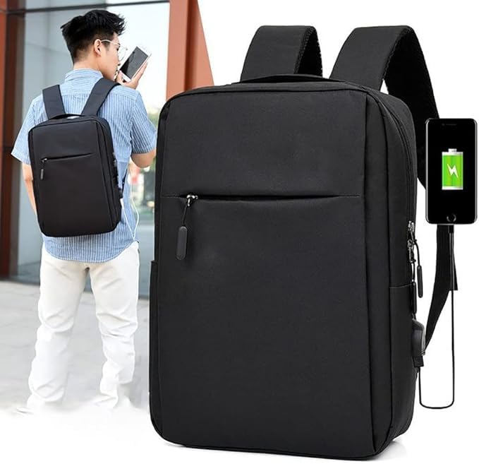 Generic - شنطة ظهر لابتوب عملية مضادة للماء بسعة كبيرة – شنطة متعددة الجيوب لحماية الكمبيوتر حتى 15.6 انش مع منفذ USB خارجي – تصميم خفيف للطلاب والموظفين والسفر والتنقل اليومي لوان اسود