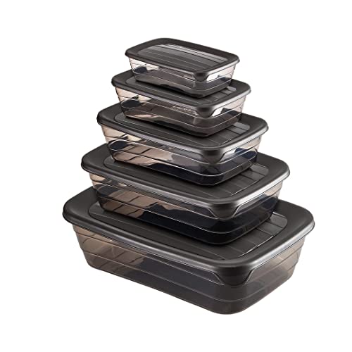 - طقم ثلاجة مستطيل من 5 مقاسات مختلفة، لون اسود
