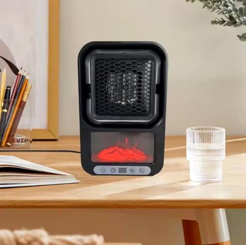 Generic - دفاية كهربائيه محمول بالريموت، سخان دوار 180 درجة، سخان كهربائي بقوة 800 وات مع جهاز تحكم عن بعد، سخان ديكوري للمكتب المنزلي مع إضاءة داخلية ومقبض جلدي، موزع هواء ساخن مع مؤقت
