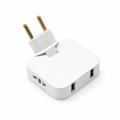 Generic - مشترك كهرباء دوار 180 درجة بـ 2 مخرج و 2 منفذ USB شحن سريع - قدرة 2500 واط، 16 أمبير - تصميم مسطح رفيع للمساحات الضيقة وخلف الأثاث - مثالي للسفر والمنزل - لون أبيض