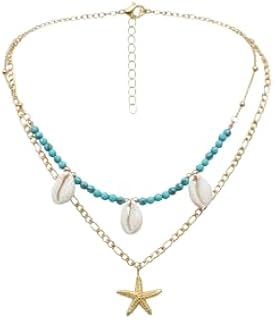 Generic - سلسلة من فولاذ مقاوم للصدأ مطلية بالذهب عيار 18 قيراط، طقم عقد طبقات بتصميم مميز، إكسسوار موضة متعدد الطبقات للنساء