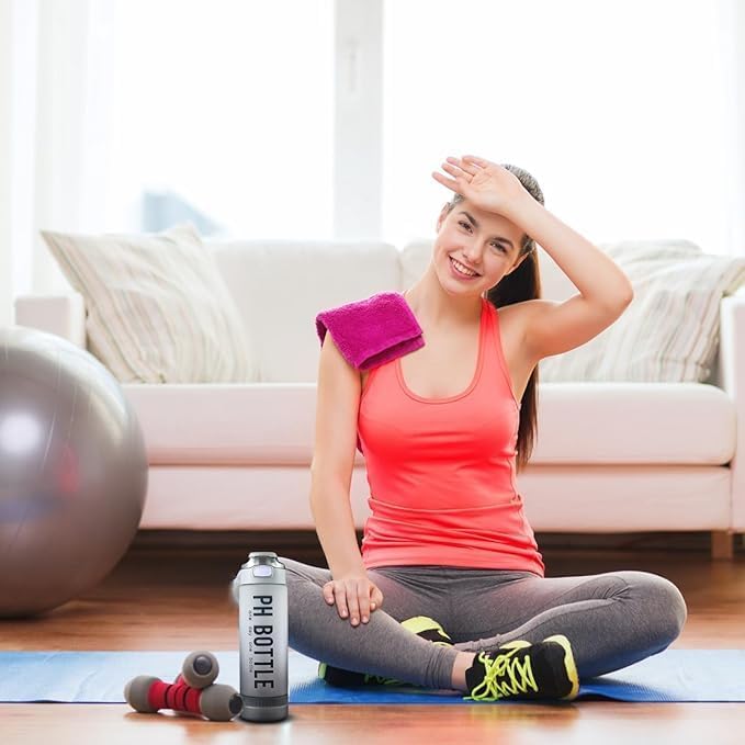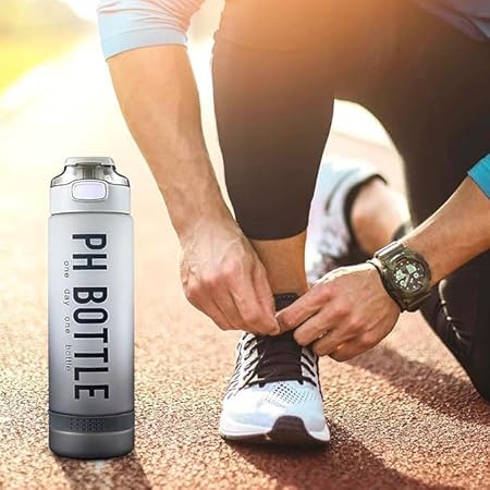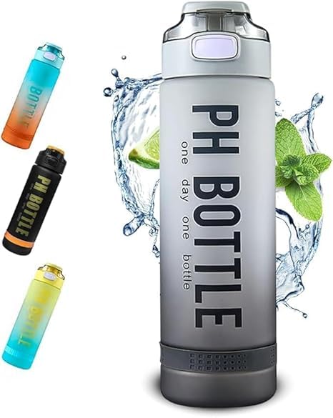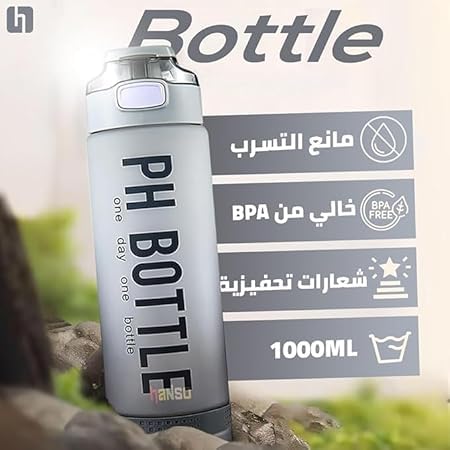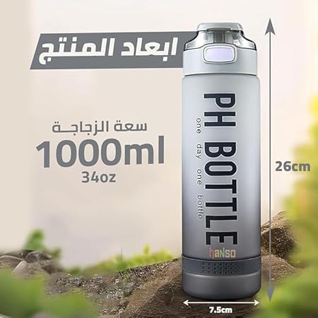 Generic - زجاجة مياه رياضية تحفيزية مع علامات للوقت خالية من البيسفينول ايه مقاومة للماء محمولة للدراجة والتخييم 1 لتر رمادي