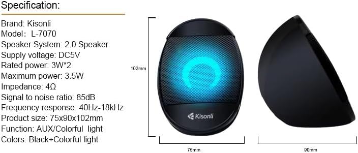 Generic - مكبر صوت محمول نظام صوتي بقناتين 2.0 - USB بإضاءة ملونة متغيرة الاستخدامات - من كيسونلي L-7070