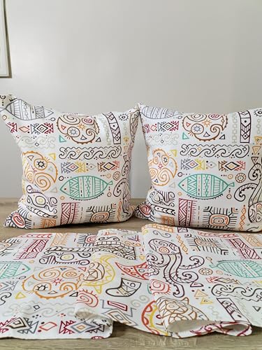 Generic - طقم 2 كفر كوشن ورانر بنمط فني، مقلس 45سم * 45 سم ورانر طاوله 40سم * 145 سم ، تصميم عصري متعدد الألوان مميزه الوان ثايته