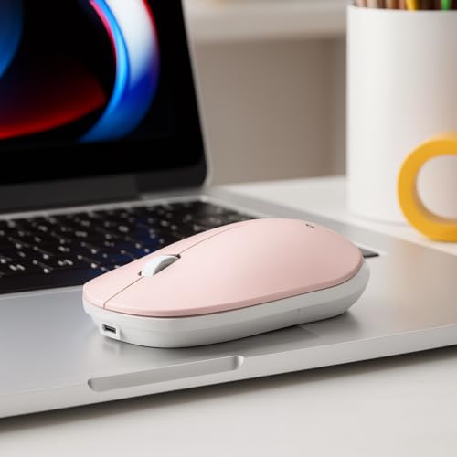 Generic - ماوس لاسلكي اتصال 2.4G بدقة DPI 1200 - تصميم مريح بأربع زرار- مدى اتصال لاسلكي 10 متر - وضع توفير الطاقة - موديل AM300 - لون وردي