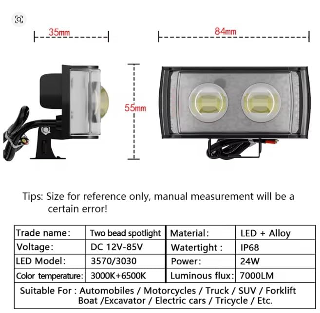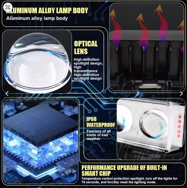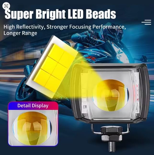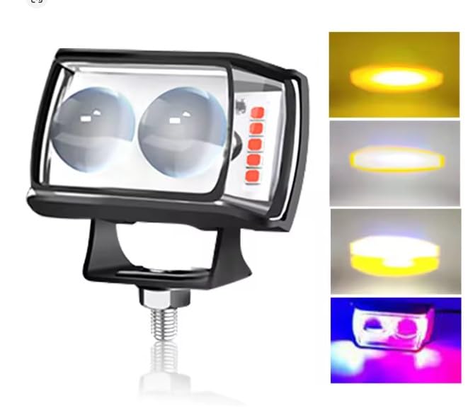 Generic - كشاف ليد شبور شعاع أصفر و أبيض ثابت ورش إضاءة قوي ولامع فانوس شبورة ، 2 عدسة -5 نظام,اضاءه شرطه جانبيه مناسب الدراجات والمتوسيلات والسكوتر (معدني 2 عدسه)