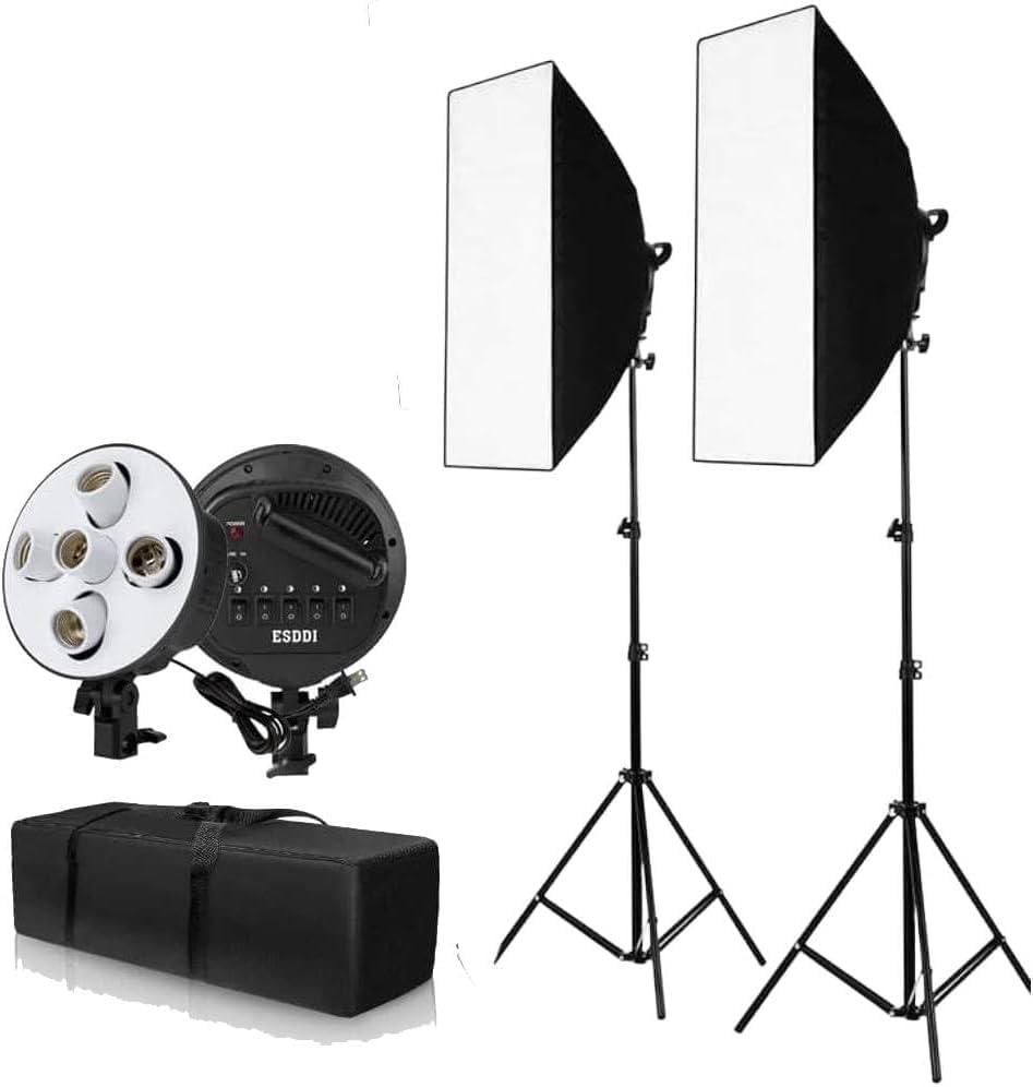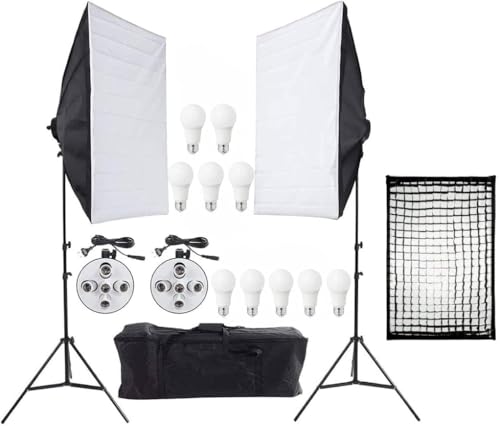 Generic - مجموعة اضاءة من 2سوفت بوكس مع دوايه خماسه ب5 لمبات، مقاس 50 × 70 سم، مع 10 لمبات، حامل وشنطة مع جريد، تصوير وصوت وتسجيل الفيديو والحفلات والتصاميم