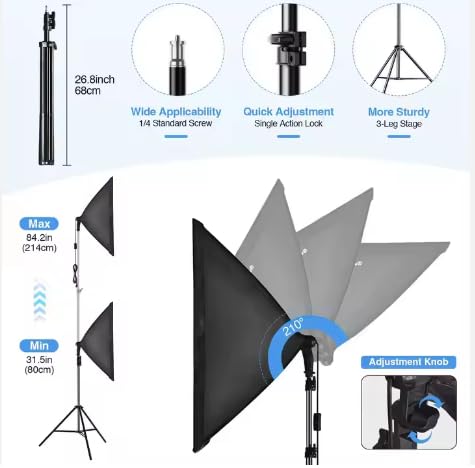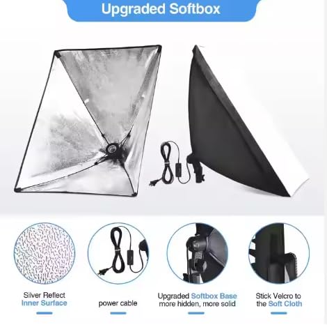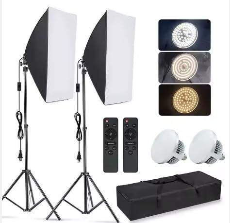 Generic - 2 سوفت بوكس مقاس 50*70 ,3 الوان للاضاءة, مع حامل 2 متر- 2 ريموت كنترول للتحكم عن بعد -2ستاند- 2لمبه ,للتصوير الفوتوغرافى وجلسات التصوير و صناع المحتوى ,لتصوير اوضح واكثر طبيعيه .