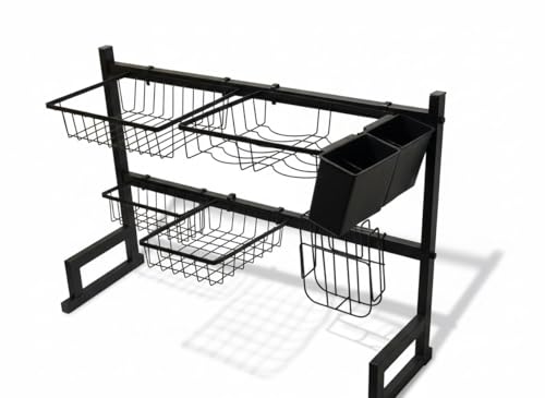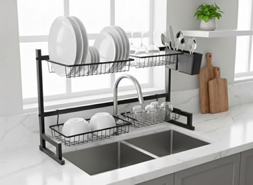 Generic - مطبقية ورف تجفيف الاطباق فوق الحوض 2 دور (عرض 85 سم)، منظم مطبخ معدني متين بطلاء حماية، رف تجفيف الاطباق فوق الحوض 85 سم – اسود