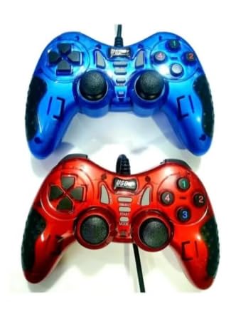 Generic - وحدة تحكم ألعاب سلكية USB مزدوجة للكمبيوتر واللاب توب، أزرق وأحمر، مع خاصية التيربو، متوافقة مع جميع الأنظمة، عبوة من قطعتين