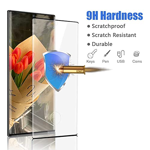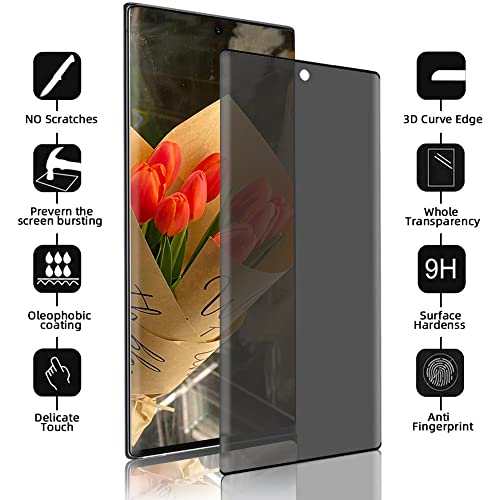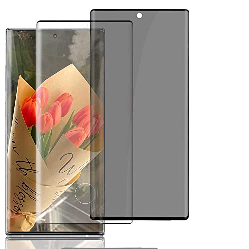 LETANG - شاشة حماية من زجاجي مقوى بتغطية كاملة 3D لخصوصية عالية، بوضوح عالي HD وصلابة 9H تدعم فتح القفل بالبصمة، سهلة التركيب دون فقاعات ومقاومو للخدش لموبايل سامسونج جالاكسي نوت 10، قطعتان