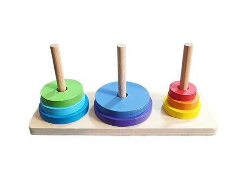 - ساعد أطفالك على التعرف على الأشكال المختلفة من خلال هذه الأشكال الخشبية لتطوير التنسيق بين اليد والعين ومهارات الإدراك البصري. السلامة: هذا البرج مصنوع من خشب صلب عالي الجودة وغير سام وآمن للعب. 8 حلقات: يتكون هذا البرج الخشبي من 3 قضبان و8 حلقات دائرية.
