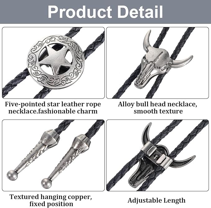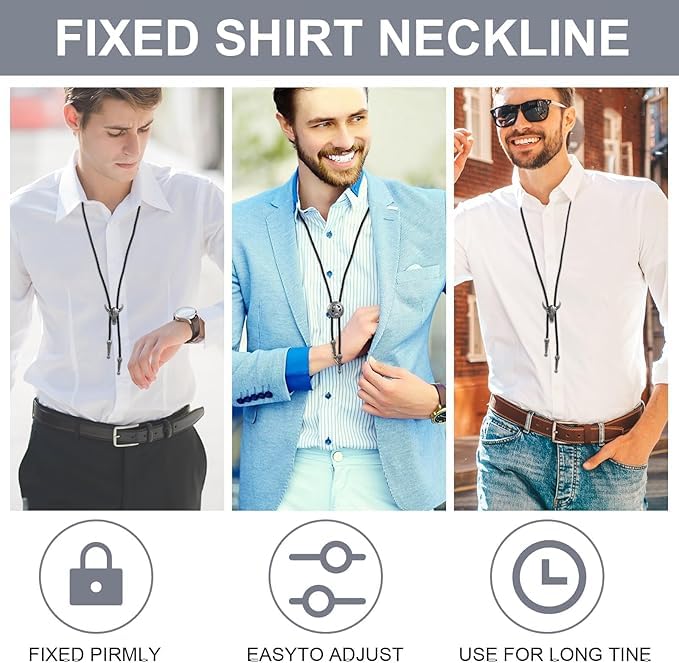 fashion mania - قطعتان من ربطة عنق بولو مصنوعة يدويًا للرجال، قلادة ربطة عنق بنمط رعاة البقر الغربي، قلادة روديو جلدية للرجال والنساء