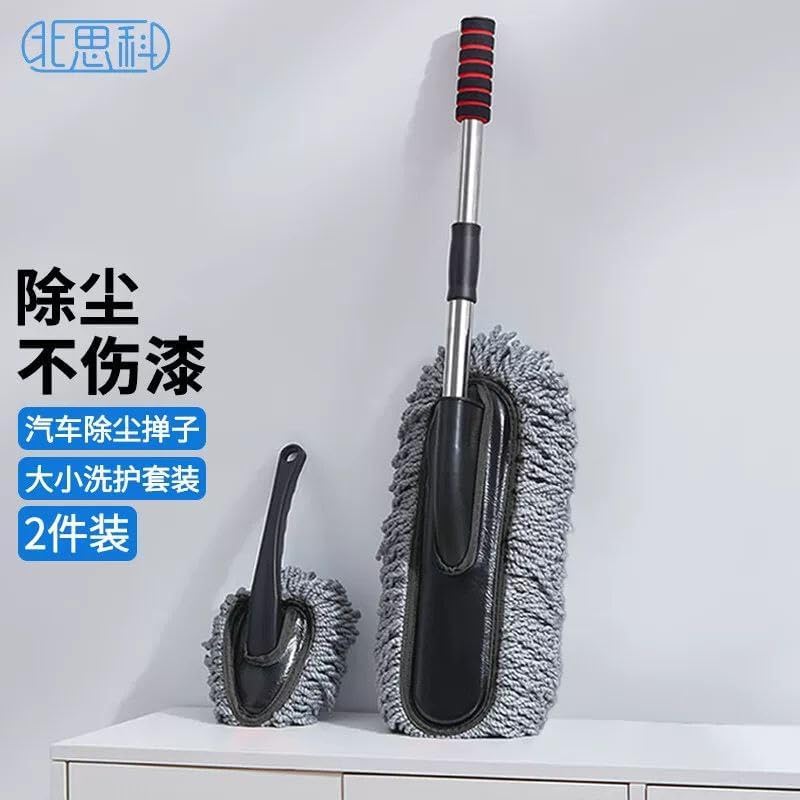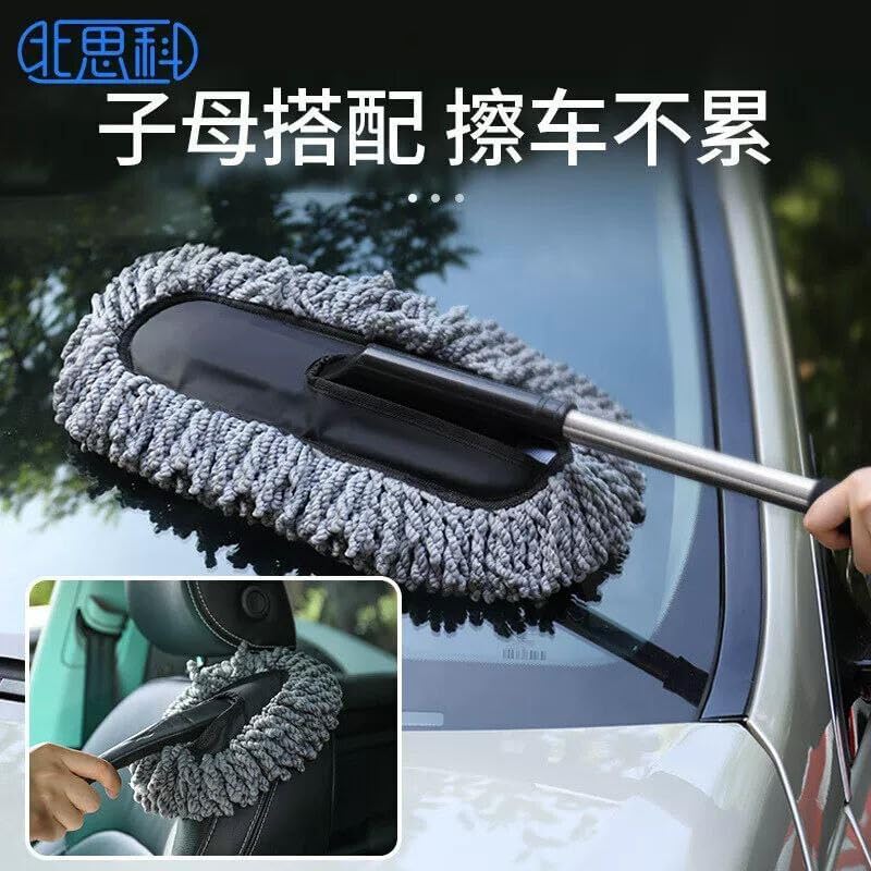 Generic - فرشاة تنظيف السيارات المتحركة، مقبض قابل للتمديد، شعيرات ناعمة، قطعتين