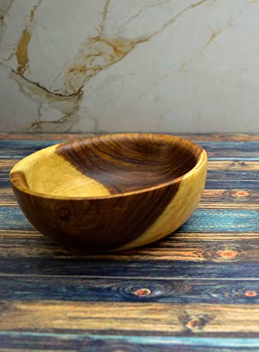 - طبق خشبي مصنوع يدويًا مقاس 20 سم من ايجيبت انتيككس، مصنوع من خشب صحي بلون طبيعي 100% من قلب الشجرة، 1 قطعة.