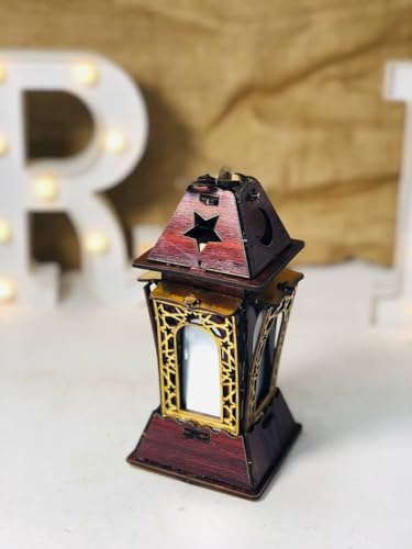 LC - فانوس رمضان خشب 20 سم اضاءه واغاني فانوس خشب لشهر رمضان مضيئة عند الحركه, رمضان جانا فانوس رمضان خشب للاصدقاء وللاطفال